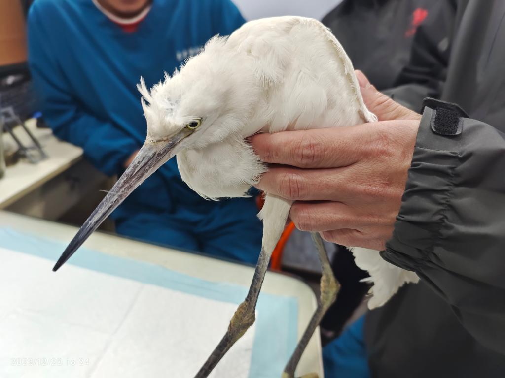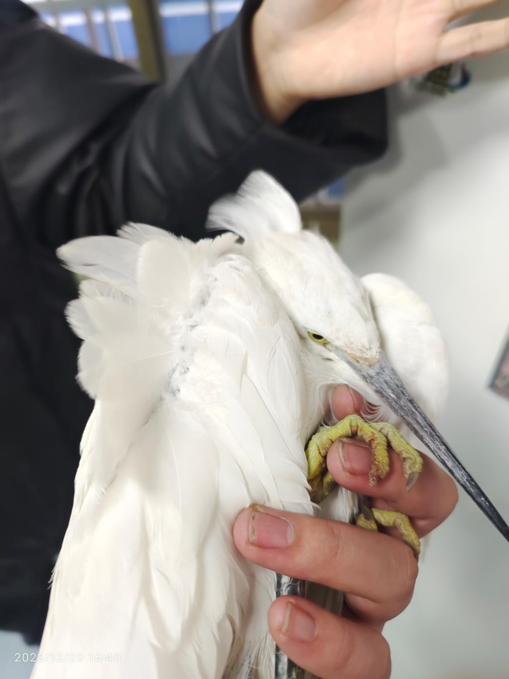 12月20日下午,我院教育与艺术系2023级视传1班戚甲驹、许忠林同学,在学校7号公寓楼前发现一只奄奄一息的小鸟。为了挽救这一“脆弱的生命”,两人立刻行动,许忠林用自己衣服包裹住它,与戚甲驹骑车到附近宠物医院寻求救治。宠物医生仔细检查后,建议二人先报警,两人立刻去往岱岳坊派出所。派出所黄警官接待了他们,并联系泰安森林公安部门处理。经鉴定,确认其为国家二级保护动物白鹭。接下来,泰安森林公安部门将进行进一步治疗,后续根据其恢复情况考虑将其放归自然,帮助这只白鹭归“家”。