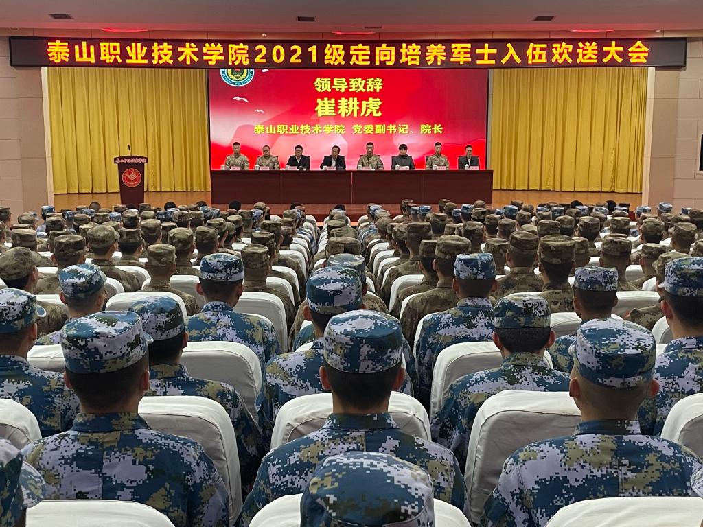 崔耕虎向即将入伍的361名军士学员表示热烈祝贺,向新兵家长表示崇高的敬意,向部队接兵首长们表示亲切的问候。他表示,学院始终高度重视定向培养军士工作,长期致力于为部队培养高层次的专业技术人才,定向培养军士已成为泰职的一面旗帜,学院将持续为国防事业贡献“泰职”力量。