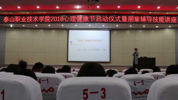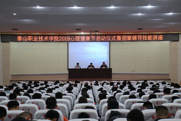 为深入贯彻落实全省高校思想政治工作会议精神,进一步提升我院大学生心理素质,提高大学生心理健康教育工作科学化、规范化、专业化水平,4月23日下午,由院学工处大学生心理健康教育中心主办“泰山职业技术学院2018年5·25心理健康节启动仪式”在图书馆报告厅举行。
