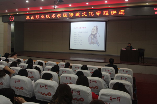 4月25日,我院在图书馆报告厅举行传统文化学习报告会。活动邀请传统文化学者李船五老师作《亲爱的孔子老师》专题报告,人文素质中心教师和500多名学生参加。