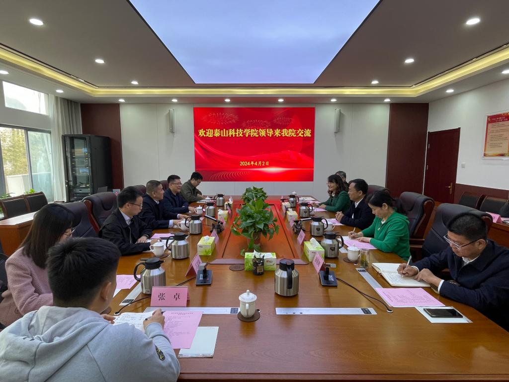 4月2日上午,泰山科技学院党委书记、省政府督导专员彭春雷一行6人,来我院就共建合作进行交流。学院党委副书记、院长崔耕虎,党委委员、副院长董少宏,党委委员、科研处处长赵京岚,党委委员、组织人事处处长陈茂周,相关部门负责人参加座谈。