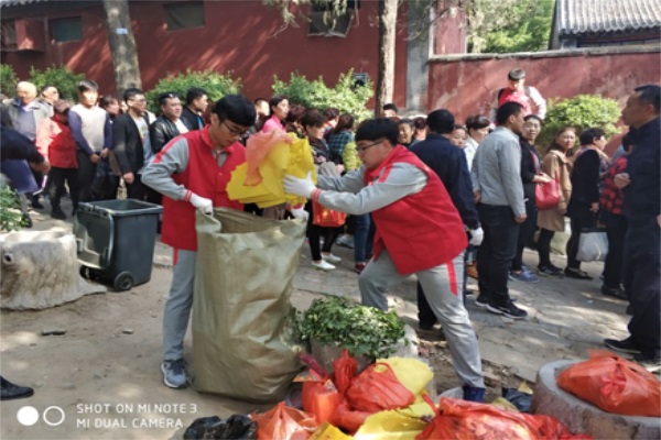 农历三月初三,是传统王母娘娘的寿辰。泰安王母池也迎来了四面八方的香客、游客来为王母娘娘上香祝寿。当日,我院志愿者前往现场积极协助工作人员维持秩序、疏散游客,搀扶景区行动不便的老人,耐心劝导香客文明上香、遵守景区规定。