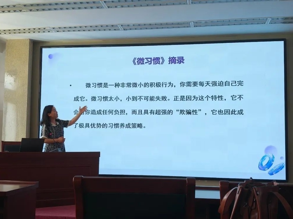 分享会上,12名教职工代表以讲述、朗诵等方式,分别从学习、工作、生活等方面与在座师生分享了《微习惯》《非暴力沟通》等多部文学、历史、心理学等经典作品。旅游国交分会的侯洪雁老师从《微习惯》中读出了这是一本自我管理法则的参考书籍,侯老师讲到了自身微习惯的案例,如:坚持跑步、坚持每天写一篇文章等,她的这些做法让我们深信微习惯的科学性和有效性,跃跃欲试之情也油然而生。汽电分会的郑媛媛老师通过分享《非暴力沟通》了解到非暴力沟通的重要性,学会非暴力沟通,对我们未来的生活、工作都会受益匪浅。教义分会的陈迎新老师通过分享《长安的荔枝》借用小人物的视角,马伯庸先生写出了底层公职人员和老百姓的艰辛,只是为了京城权贵的口腹之欲,底层需要付出的努力难于登天。王予宸老师通过分享《为何家会伤人》讲到家是港湾,爱是退路。基于爱,通过感受的认知才会建立最健康的家庭关系,为孩子的成长创造温馨的环境。生物分会的陈泳汀老师通过分享《被讨厌的勇气》中明白了要关注当下,不要执着过去,也不要过于浮躁地想要看到未来,当下才是进行时才是最可靠的。机电系侯加阳老师分别从“读书之乐”、“读书之法”、“读书之用”三个方面分享了自己的阅读方法和心得,让人获益匪浅。