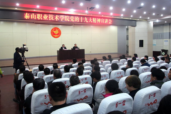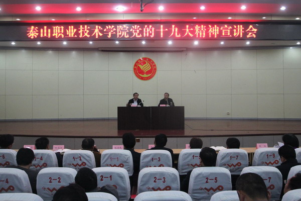 为深入学习宣传贯彻十九大精神,11月14日,我院在图书馆报告厅举行党的十九大精神宣讲会,由党委书记张勇华为全院教职工作十九大精神学习辅导报告,全体在校党委委员,教职工参加。党委副书记、院长毕于民主持宣讲会。