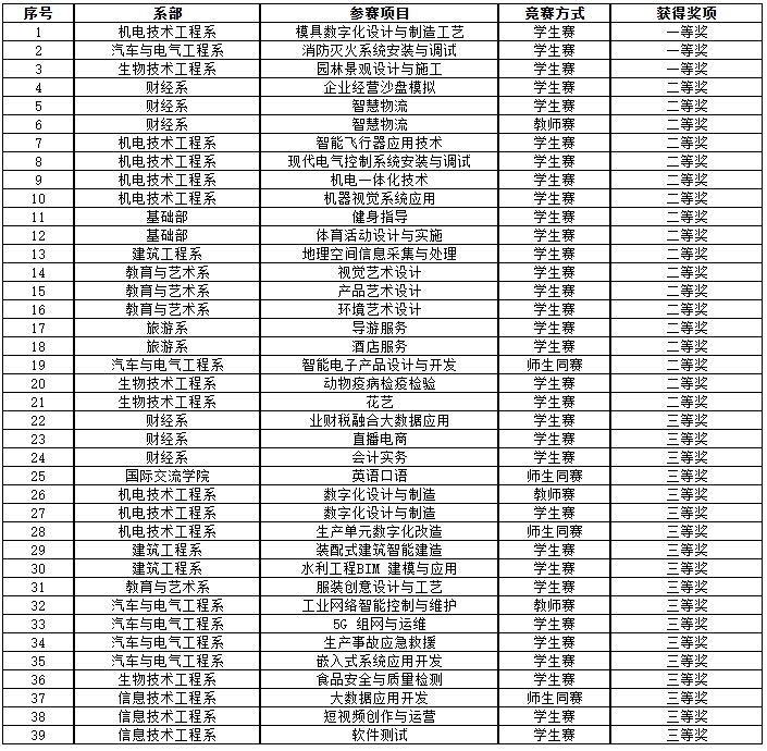 第十七届山东省职业院校技能大赛自11月27日开赛以来,至12月20日全部结束。我校在各比赛赛场捷报频传,获一等奖3项,二等奖18项,三等奖18项,共计获奖39项。