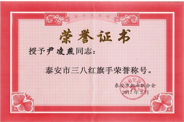 近日,我院教师尹凌燕被授予泰安市三八红旗手荣誉称号。