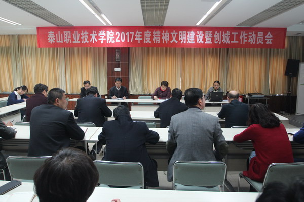 4月12日,我院在致远楼三楼会议室召开2017年度精神文明建设暨创城工作动员会,党委委员、副院长张小烨,党委委员、组织人事处处长亓玉华,各系部处室负责人及创建领导小组办公室成员参加会议。