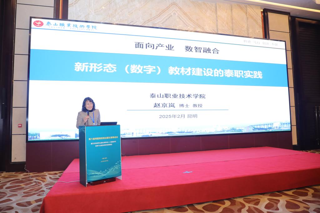 在职业院校分论坛上,赵京岚做题为“新形态(数字)教材建设的泰职实践”报告,分享了我校在数字教材建设方面的实践经验和建设成果。她提出,要紧跟职业教育发展新理念,紧贴行业产业发展新需求,紧抓技术发展新需求,数智融合促进教育变革创新,积极开辟数字教材建设新赛道,探索符合职教类型特征的数字教材,加快建设新形态数字教材。