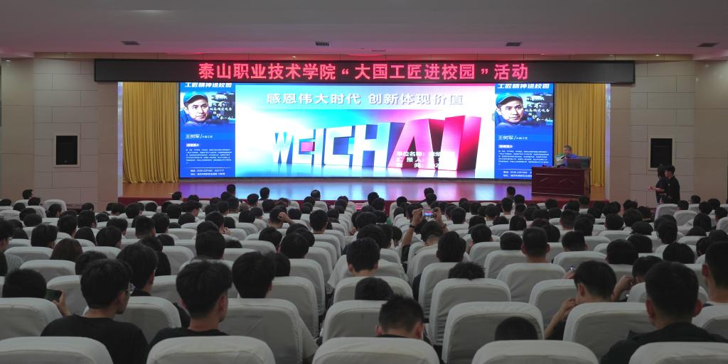 王树军以“感恩伟大时代,体现创新价值”为主题,分享了自己从一名技校生成长为“大国工匠”的奋斗历程。他表示,技能是产业工人的“硬通货”,只有不断学习、勇于创新,才能在岗位上实现自身价值。报告中,他讲述了自主维修德国进口设备、改进光栅尺气密气路等生动案例,尽显精益求精、追求卓越的工匠精神。赵志勇介绍潍柴集团发展历程与产业布局,管丽芳讲解潍柴产业学院运行模式,为学生职业发展提供新思路。