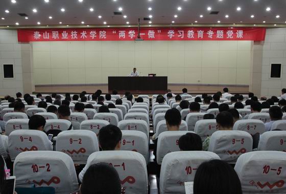 为扎实推进我院“两学一做”学习教育深入开展,按照中央、省市委部署要求,8月29日,市教育局党委委员、副局长张传峰,职成教科科长杜平来我院指导“两学一做”学习教育,我院全体党员干部参加此次活动。张传峰为全校党员干部上党课,杜平在会后召开学院党支部书记及党员代表座谈会。
