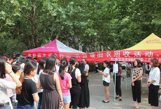 7月6日,我院和泰安汉东环保科技有限公司联合举行“泰职师生爱在行动,衣份暖旧衣回收活动”启动仪式。市慈善总会邢尊常,学院党委委员、工会主席李敬海,学工处、院团委和工艺美术系学生科负责人及全院师生代表参加捐助活动。