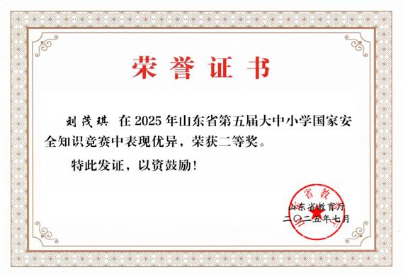为深入贯彻落实总体国家安全观,增强师生国家安全意识,近日,学校参加山东省教育厅组织开展的2025年国家安全宣传教育系列活动,并取得优异成绩。