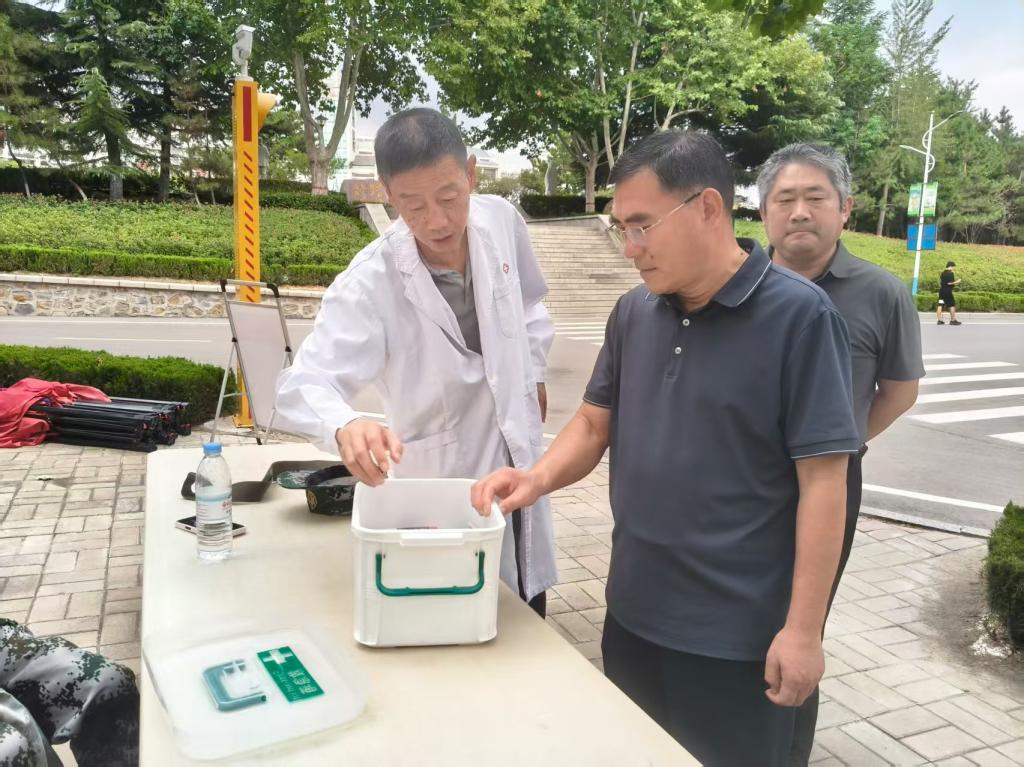 陈士兵细致查看了各训练方队的组织与实施情况,与承训教官和参训学生亲切交流,详细询问医疗保障点医疗物资的贮备情况。并向带训的辅导员、班主任了解学生的思想动态和身体状况。