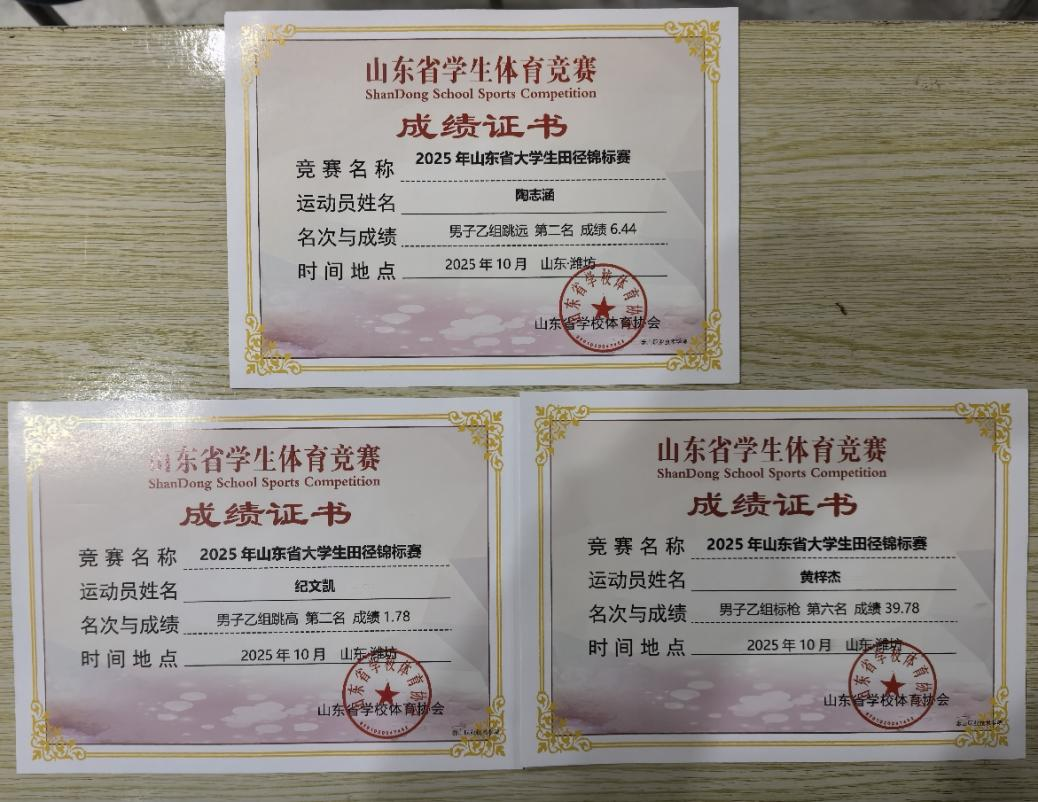 10月8日至14日,由山东省教育厅、山东省体育局联合主办的2025年山东省大学生田径锦标赛在潍坊奥林匹克体育公园举行。学校代表队获亚军2项,单项第6名一项。