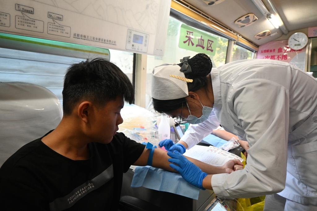 在志愿者的引导下,献血者依次完成信息登记、血压测量、血液检测等环节。抽血过程中,志愿者主动安抚献血者情绪,并讲解注意事项。