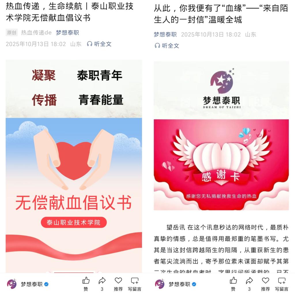 活动筹备阶段,学校通过新媒体平台推送无偿献血知识科普文章及倡议书,号召青年学子积极参与。