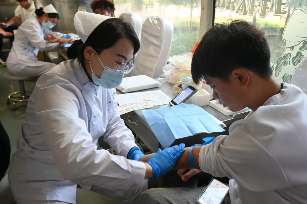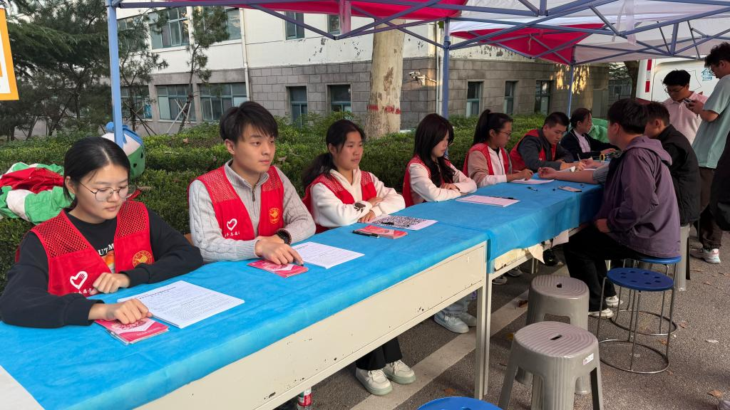 10月14日至17日,学校联合泰安市中心血站在三号公寓楼西侧开展“传递希望 献出热血”校园无偿献血活动。