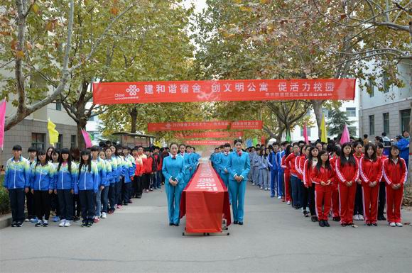11月4日,我院“2015金秋宿舍文化艺术节”开幕式在学生公寓笃行路举行,党委委员、副院长张小烨,党委委员、工会主席李敬海,泰安联通公司副总经理侯忠,师生代表400余人参加开幕式。