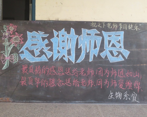 在教师节来临之际,学生们通过制作祝福漫画、主题板报、祝福标语和纸条等各种方式向老师们表达了自己的感恩之情,营造出浓浓的感恩氛围。