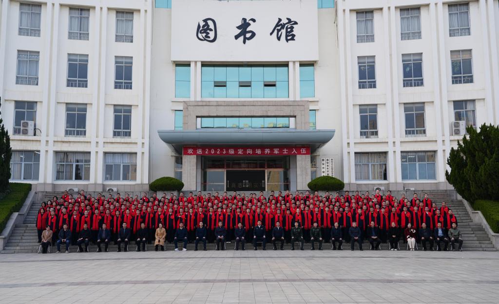 3月19日,学校2026年定向培养军士训练展示暨入伍欢送会议在田径场举行。接兵干部代表,学校党委书记戴先锋,校领导李新林、陈茂周,相关部门负责人参加活动。