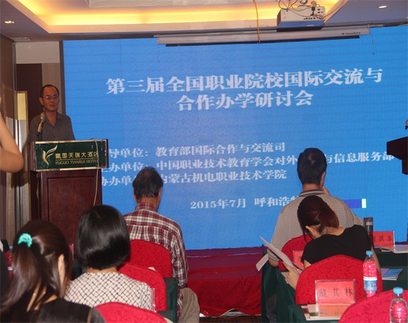近期,第三届全国职业院校国际交流与合作办学研讨会在内蒙古呼和浩特召开。学院党委委员、副院长刘洪东和国际交流学院负责同志参会。