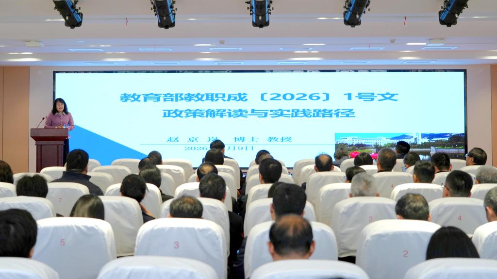 赵京岚围绕《教育部教职成〔2026〕1号文政策解读与实践路径》作主旨报告,从“时代引领、顶层设计、实践思考、向新出发”四大维度,为全校高层次人才精准解读政策、明晰实践路径。