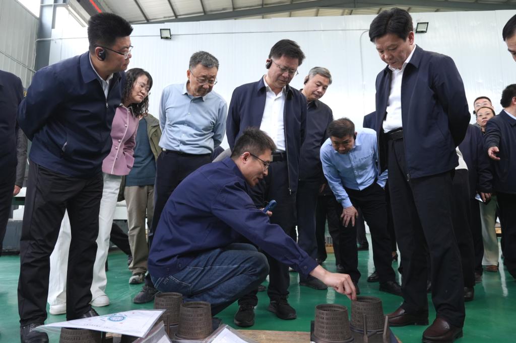 在泰山区,调研组先后走访了山东泰开电力电子有限公司、山东菲利信数字科技有限公司、泰安市泰和电力设备有限公司、泰安海纳轴研科技有限公司、泰安深蓝航天科技有限公司、普瑞特机械制造股份有限公司等六家企业,听取各企业负责人介绍经营情况,并参观生产车间、研发平台及数智化加工车间等。