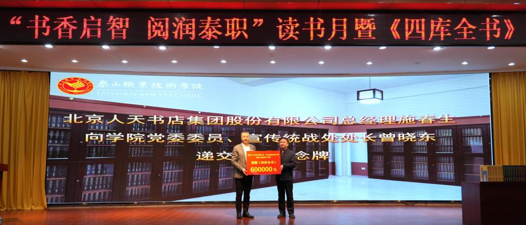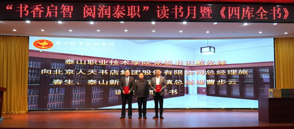 4月23日,在第31个“世界读书日”来临之际,学校在图书馆报告厅举行2026年“书香启智 阅润泰职”读书月暨《四库全书》捐赠仪式。