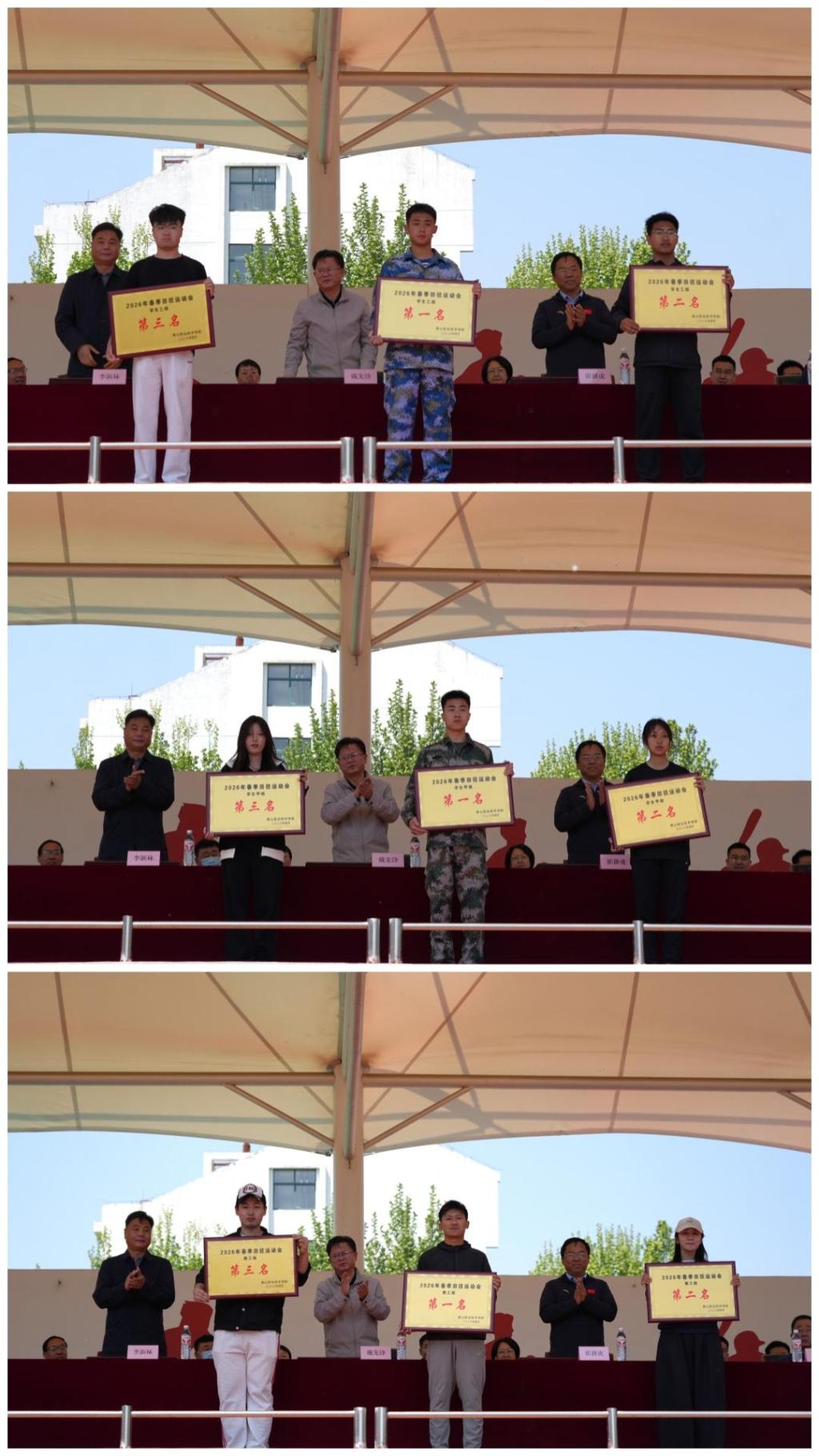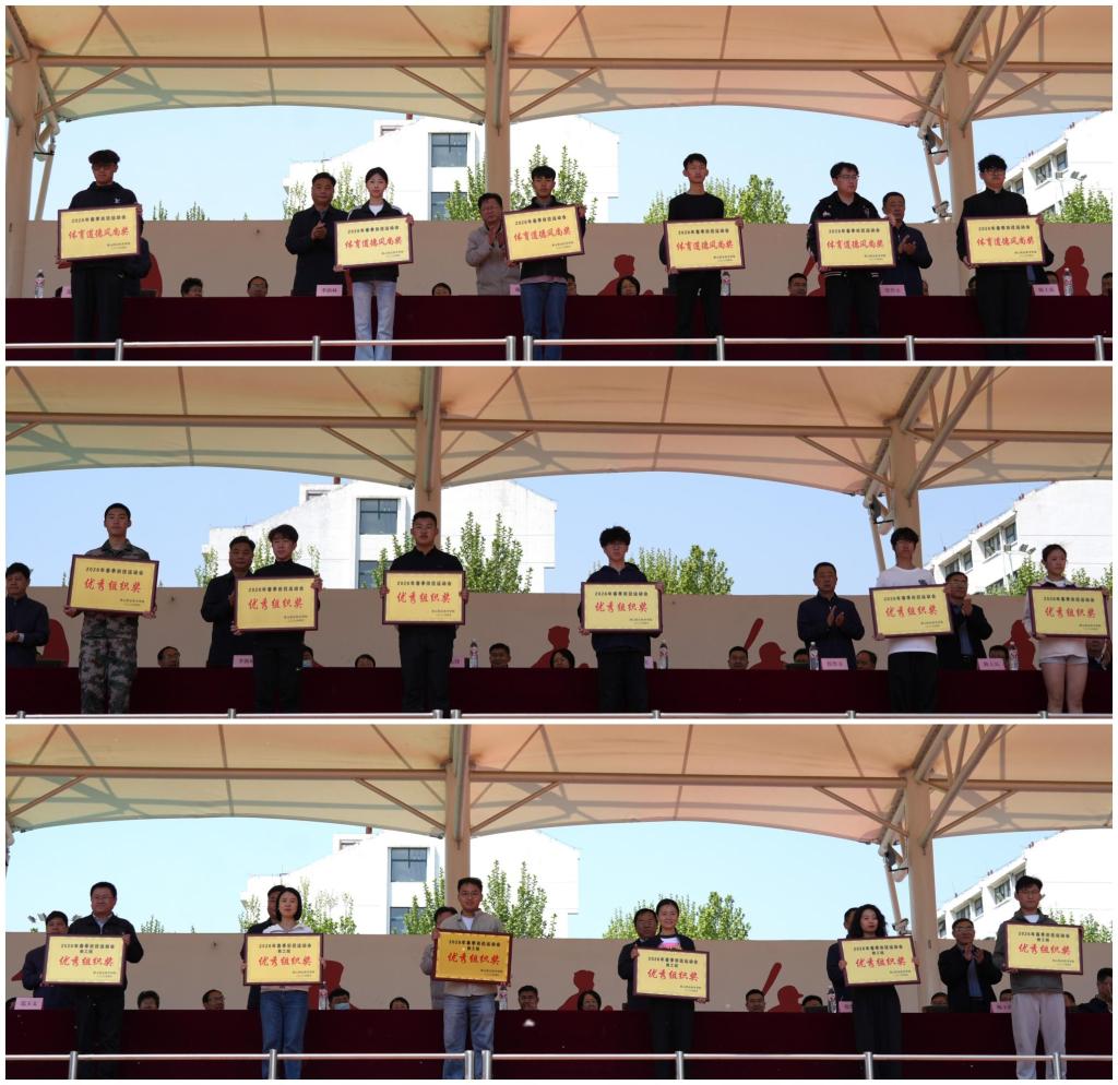 军民融合教育系、基础部、教育与艺术系获学生甲组团体前三名;军民融合教育系、建筑工程系、旅游系获学生乙组团体前三名;基础思政分会、财经分会、建筑分会获教职工组团体总分前三名。旅游系、信息技术工程系、汽车与电气工程系、建筑工程系、机电技术工程系、思政部获体育道德风尚奖;军民融合教育系、基础部、教育与艺术系、财经系、生物技术工程系、国际交流学院获学生优秀组织奖;机电分会、学工分会、教务分会、汽电分会、信息分会、机关分会获教职工优秀组织奖。