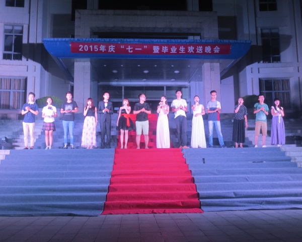 在“七·一”来临、2015届毕业生离校之时,同学们在一首首校园歌曲中回首三年大学生活,用自己的歌声表达了对党的热爱,对老师的感恩。在校生也献上节目表达对学长们深深的祝福。晚会在全体演员《二十年后再相会》的合唱歌声中结束。