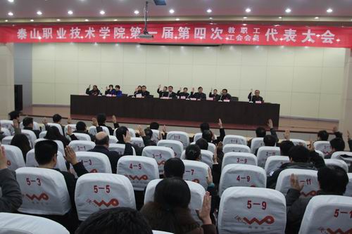 下午4时,一届四次教代会暨工代会闭幕式在图书馆报告厅举行,党委副书记、副院长马培安主持会议。大会表决通过了《泰山职业技术学院章程(修订案)》、《泰山职业技术学院师德师风建设年实施方案》、《院长工作报告》、《学院财务工作报告》、《工会工作报告》、《提案工作报告》、《工会经费审查情况报告》。