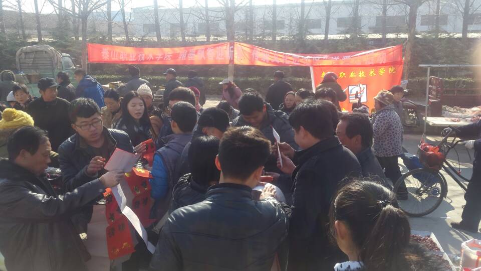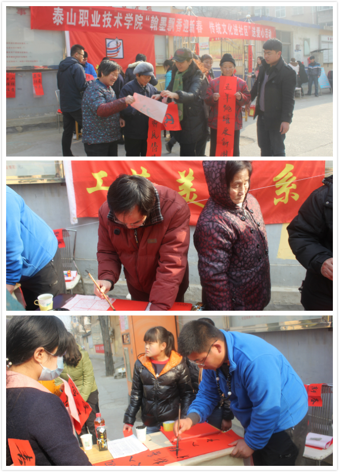 举行“迎新春送春联”活动,是我校的一项传统服务社会、奉献爱心活动,既弘扬了传统文化,又达到了利用专业特长服务泰安市民的目的。据统计,本次义务送春联活动共送出1000余幅对联及“福”字。
