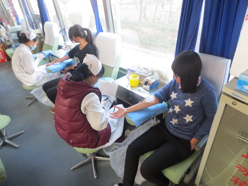 天气虽然非常寒冷,但丝毫阻挡不了同学们奉献爱心的热情,排队献血队伍中还有许多平常非常胆小的女生,从同学们嫣然笑语中看得出他们内心的从容与淡定。同学们为自己能对社会做一点力所能及的事而感到自豪,从填表、测血压、排队化验到抽血,脸上始终带着笑容,整个过程始终都在一种轻松愉快的氛围中有序进行。