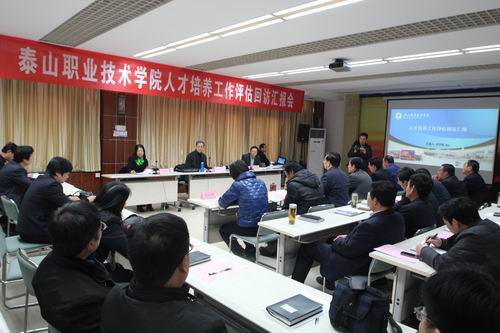 12月22日,由青岛职业技术学院原院长史忠健教授、烟台职业技术学院院长温金祥教授、山东旅游职业学院副院长陈增红教授一行三人组成的评估专家组进驻我院,开展为期两天的评估回访工作。