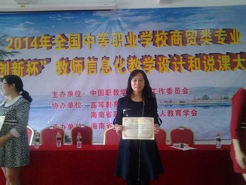 11月11日至14日,全国中等职业学校商贸类专业“创新杯”教师信息化教学设计和说课大赛在海南省商业学校举行。我院财经系教师宗莉苹代表山东省参加比赛获二等奖第一名。