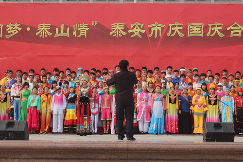 该活动是由市委宣传部、市直机关工委、市文广新局联合组织的。为庆祝建国65周年,歌颂党、歌颂社会主义祖国、歌颂人民,颂扬美好生活,在泰安市政广场举行。经过层层选拔,共有12支代表队参赛,(各县市区、新矿集团、肥矿集团等各1支代表队,市直机关工委3个),参赛队大多是专业团队,我院是唯一参赛学校。