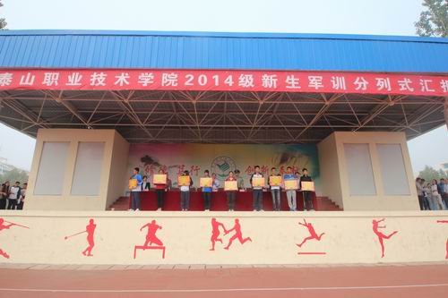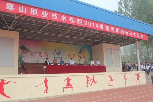 9月27日上午,我院2014级新生军训分列式汇报展示在体育场隆重举行。参训部队营长于堂文,我院党委副书记、院长毕于民;党委委员、副院长张小烨,刘洪东;党委委员、纪委书记张广健;党委委员、工会主席李敬海;党委委员、办公室主任韩玮;相关处室负责人、参训官兵及全体新生参加了大会。大会由李敬海主持。