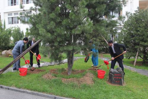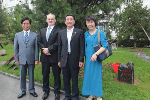 开班典礼结束后,Henlen Chen(陈衡)女士,Paul Sadler(鲍尔 萨德勒)和孙运飞、闫远东共同为中澳友谊林培土浇水。澳方客人在刘洪东的陪同下参观了我院泰山书院、玉雕中心和机电系实训中心。