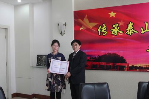 4月18日上午,肥城市盛世佳和购物广场有限公司与肥城市高级技工学校到我院向旅游系赠送锦旗,并向我院教师李莎莎颁发肥城市高级技工学校客座教授聘书。党委副书记张清民,旅游系、教务处等部门负责人及相关同志出席赠送仪式,教务处处长李志强主持仪式。