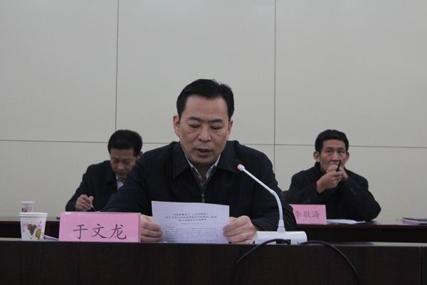 于文龙宣读了山东省教育厅、山东省财政厅《关于公布山东省高等教育名校建设工程第二批立项建设单位的通知》和泰安市人民政府《泰山职业技术学院建设省高等教育名校工作领导小组》名单。