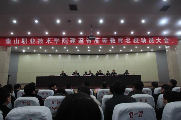 3月6日,我院在图书馆报告厅隆重召开建设省高等教育名校动员大会,标志着学院名校建设工程全面启动。泰安市政府副市长徐恩虎,泰安市政府副秘书长于文龙,学院党委书记闫远东,党委副书记、院长毕于民,党委副书记、副院长马培安,纪委书记张广健等在校党委成员出席,全体教职工和学生代表约500人参加大会。大会由于文龙主持。