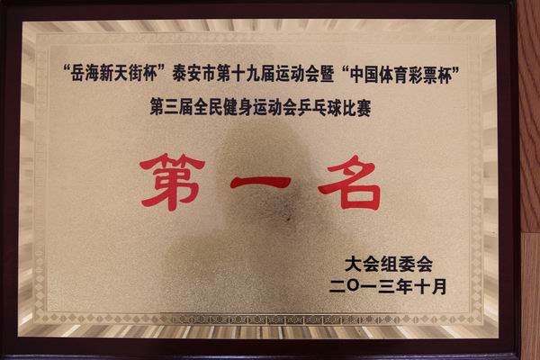 暨第三届全民健身运动会乒乓球比赛第一名