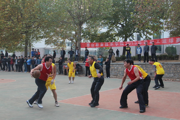 10月28日下午,我院2013年教职工男子篮球比赛在篮球场正式开赛。本次篮球赛旨在丰富我院教职工文化生活,增强教职工体质,活跃校园气氛,增进各部门之间的友谊和交流,由院工会主办,体育部承办,共有8支教职工代表队参赛。