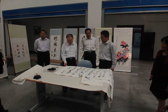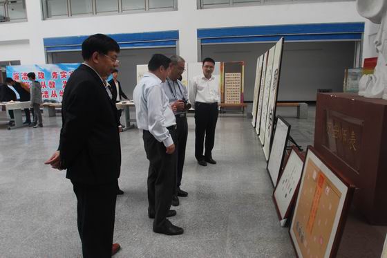 为使语言文字规范化的精神落到实处,10月10日上午,我院教务处、泰山书院、机电系共同举办了以“写好规范字”为主题的师生书画展。省语言文字工作组领导、市教育局相关负责同志参观了书画展。