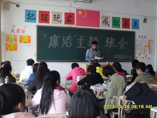 班会活动,以“教育自己、带动家庭、影响身边环境”为廉政文化教育的切入点,积极开展各种主题讨论,引导全系师生树立尊廉崇洁、积极向上的高尚思想道德情操,养成自律、诚信和富有社会责任感的良好行为习惯,为师生更好的实现自我价值和社会价值,使“廉洁从教,廉洁从学”的廉政校园文化更加深入全系教师心中,体现在日常教学的行动中。