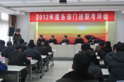 1月26日,我院2012年度各部门述职考评会在办公楼三楼会议室召开。学院党委全体成员出席会议,分管领导对部门进行点评。各部门副职以上干部参加会议,并现场打分投票。