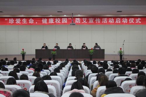 11月28日下午,学院在图书馆报告厅隆重举行“珍爱生命,健康校园”防控艾滋病宣传活动启动仪式。团市委学校部王亚超部长和陈迪同志参加了会议,学院工会主席李敬海、学工处(团委)负责同志、各系分管学生工作的有关同志、院系学生会主席团成员、各系学生代表以及院级学生社团成员500余人参加了启动仪式。启动仪式由院团委副书记张新刚同志主持。