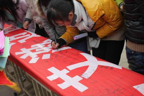 启动仪式结束后,同学们参观防艾知识宣传图片,进行了“珍爱生命,健康校园”签字活动。 ( 学工处团委 )