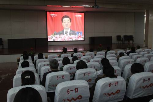 11月8日上午九时,备受全国人民关注的党的十八大隆重召开。我院组织全体教职工在图书馆报告厅集中收看十八大开幕式实况直播,认真收听收看胡锦涛同志代表中共第十七届中央委员会向大会作的报告。