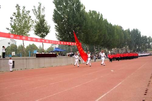9月21日下午,我院举行了2012级新生军训阅兵式。武警泰安支队副支队长张凯,学院党委副书记、院长薛云东,党委委员、副院长张清民,党委委员、纪委书记宋元明及各系负责同志、全体2012级辅导员(班主任)出席了阅兵式。仪式由张清民主持。